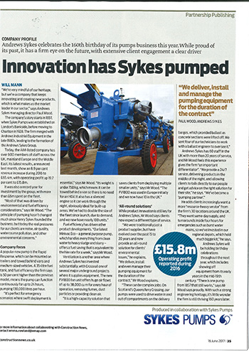 This year is a landmark year for the company as Sykes Pumps celebrate their 160th anniversary of continuous operation. Many things have changed since the business was founded 160 years ago, but an unwavering commitment to providing high levels of service and optimum pumping solutions remains a constant feature of their day-to-day operations.