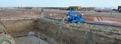 Although the principle is straightforward, considerable Wellpoint Dewatering expertise is necessary to implement reliable and efficient ground water control systems. The equipment and method of operating has been developed by Sykes Pumps Kuwait specialists as a result of their experience over 35 years in the region.